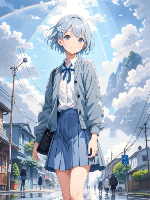 (blurry background:1.3), (extremely detailed fine touch:1.3), (hard light, studio light, light rays, dappled light, reflection, shadows, ray tracing:1.0), ///, girl, light blonde short hair, side ponytail, braid, chignon, (Floral print dress:1.3), Vest, (Ankle Boots:1.3), city, fashion street, shop