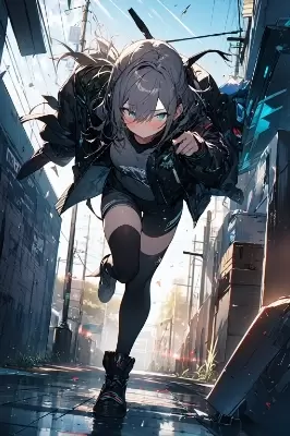cyberpunk, science fiction,futuristic vibe, electric energy, cosplay, striking visuals, striking contrast,
