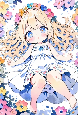 可憐に咲く花のように美しい少女をイメージして生成してみました♪ kiwimixXLの場合、「Watercolor」のプロンプトを強調しないと水彩画にならないですが、強調してから生成してみると綺麗に水彩画として生成してくれます。 しかし、お題「上目遣い」の時みたいにプロンプトを強調し過ぎるとイラストそのものが崩壊してしまった前例があったので二の舞を防ぐため、今回は強調をほどほどに行いました。