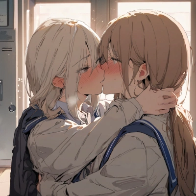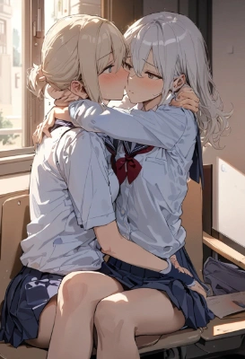 masterpiece, best quality, extremely detailed, anime,(2 girls, school girl), beautiful face, lesbian couple, Yuri, school uniform, (1 girl sitting on girlfriend’s laps and putting her arms around girlfriend’s neck, side sitting), look away, <lora:noline:1> <lora:lightline:1>