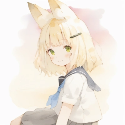 1girl, original,(watercolor :0.9),solo,preteen female body type,(fox ears:1.2),medium hair,blonde hair,shirt,skirt,outdoors,dusk,gradient sky,[(Action:1.0)::0.3],[(Harmonious figure)::0.5],
