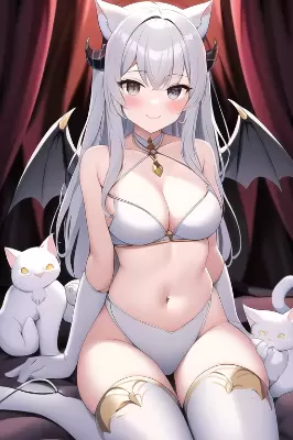masterpiece, best quality, masterpiece, best quality, (((masterpiece))), (((best quality))), Tokyo Mew Mew, petite,kawaii,white cat,demon wings,glimmer eyes, glimmer pupils, sparkle eyes,heart shaped pupils, ((ultra-detailed)), ((illustration)), ((disheveled hair)), ((((sharp focus)))), petite,white cat,(1 girl,yuri yuri,round eyes,round face,kawai face,yuri yuri,round eyes), (solo), ((long hair)),petite, thigh boots ,smile, white cat,closed mouth, girl, gray eyes, navel, large breasts, horns, hotel room, ((fusion of (((saree))) and navel) )), bloom, ((black_gloves)),white cat,