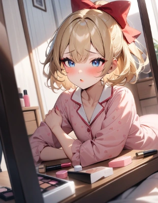 masterpiece, best quality, very aesthetic, absurdres,1girl,short hair, blonde hair, blue eyes, (hair bow:1.2), red bow, programming, computer, keyboard, multiple monitors, coding, focused, delicate, beautiful, detailed, masterpiece, best quality, very aesthetic, (keyboard:1.1), (multiple monitors:1.1), (coding:1.2), (focused:1.1), (delicate:1.1), (beautiful:1.1), (masterpiece:1.3), (best quality:1.3), (very aesthetic:1.3)