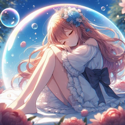 {{masterpiece}}, {{best quality}}, {ultra-detailed}, {{kawaii}}, cute, {lovely}, illustration, anime style, full body, full body focus, a cute girl, 1girl, pink hair, {{{{a girl sleeping in bubbles}}}}, {{{hugging own legs}}}, {{floating large bubble}}, {sleeping}, {{dreaming}}, fantasy, surreal, night, stars, moon, clouds, ethereal, whimsical, imagination, magical, youthful, innocence, wonder, {{floating}}, peaceful, soft, pastel, dream.