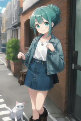 masterpiece, best quality, highres, 1girl, butler’s outfit, black vest, antique button, white shirts, black ribbon, shoes, かわいい, medium breasts, marine blue hair, aqua eyes, asymmetrical hair, bob cut, smile, 18 yo, hug, school festival, classroom, one eye closed<lora:flat2:0> <lora:hairdetailer:0.5>