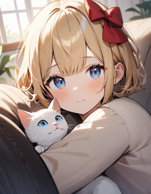1girl, blonde hair, blue eyes, (hair bow:1.4),red bow, one side bangs covering eye, hair got longer, wondering expression, hand on chin, thinking about haircut, cute, pensive, detailed, (girl:1.1), (blonde hair:1.1), (blue eyes:1.1), (red bow:1.1), (short hair:1.1), (one side bangs covering eye:1.2), (hair got longer:1.2), (wondering expression:1.2), (hand on chin:1.1), (thinking about haircut:1.2), (cute:1.2), (pensive:1.1), (detailed:1.2)