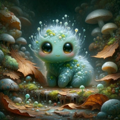 グリースクリッター - キッチンの油汚れから生まれる、ぬるぬるした小さな生き物。夜中に調理器具を滑らかにしてくれる。 Greasecritter - A slimy little creature born from kitchen grease. It smooths out cooking utensils in the middle of the night.