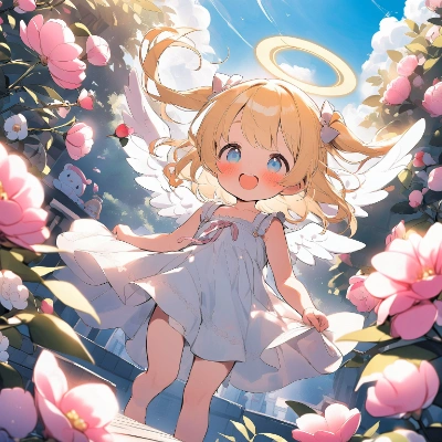 1girl ((little female child)) ((loli)) ((toddler)) ((preschooler)) two side up very (long) blonde hair flower red (long) kimono floral print (long) japanese clothes blush smile closed mouth [[blue eyes]] looking at viewer standing on grass japan floral garden (thin) (skinny) (slender) masterpiece best quality
