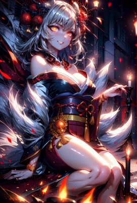 『お、お目覚めですか、玉藻様』 『おはよう、クマ。妾の可愛いペットはどうしておる?』 『はっ。猫めは戦闘で負傷し、メディカルラボに入っております。犬コロも軽傷負ったものの、今は眠りについております。』 『今回は珍しく深く眠りについたのじゃが、術は解けんかったのじゃな』 『そのようで』 S級 数千年は生きているとされるヴィラン アーマーごと消し炭にできる狐火 幻術 呪術 洗脳の呪眼 完全回復するため治癒の間からは出られない 完全回復でヴィラン側最強 ―なかなか極悪な表情が出なかったので、苦労しました。 尻尾も9つじゃないしね!(笑) 完全体だとシスターでも勝てないようです。