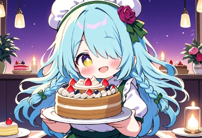 hair over one eye,black school uniform,playing the red electric guitar,colorful code,music room,You can see cherry blossoms from the window,spring sunshine,breeze,blush,smile,great joy,:d,Falling cherry blossom petals,masterpiece, best quality, extremely detailed, anime,pretty girl, longhair, puff sleeve, black hair, red eyes, student, colorful,upper body,,