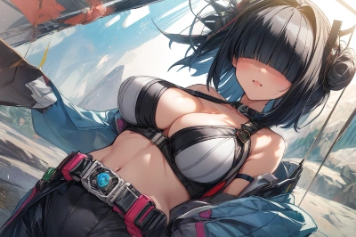 masterpiece, best quality, 1girl, solo, black hair, short hair,