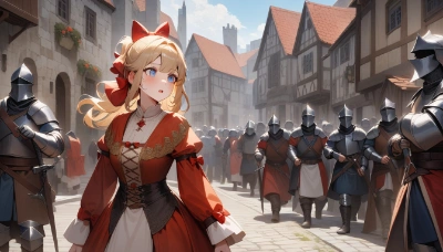 1girl, blonde hair, blue eyes, red bow, (hair bow:1.2),short hair, knight armor, returning from battle, big smile, extremely happy, detailed background, (girl:1.1), (blonde hair:1.1), (blue eyes:1.1), (red bow:1.1), (short hair:1.1), (knight armor:1.2), (returning from battle:1.2), (big smile:1.2), (extremely happy:1.2), (detailed background:1.2)