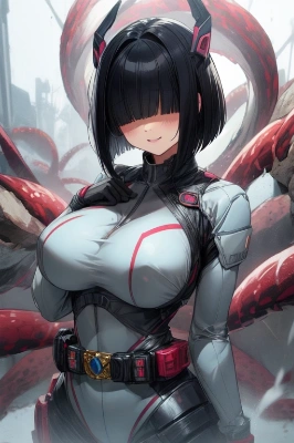A toy figure wearing a headset and holding a handheld lantern, 1girl, solo, blue hair, gloves, A canvas-colored scarf that covers the lower half of the face, Eyes that shine like jewels, full body, (A city at night when all the lights have gone out), (((((on a cliff overlooking the city))))), (In the darkness), (only a single handheld lantern hanging in the girl's hand lights up), masterpiece, best quality, 1girl, solo, black hair, short hair, delicate colors, illustration, bright colors, beautiful hair over eyes, gigantic breast, more_details:-1, more_details:0, more_details:0.5, more_details:1, more_details:1.5