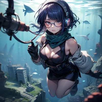 (((On an underwater cliff overlooking an ancient city))),