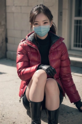 (photorealistic:1.4), (RAW photo), masterpiece, best quality, extremely detailed, girl, neat and clean, embarrassed, shy look, white rubber suit, white leather gloves, white leather boots, white leather respirator, almond shaped eyes, staring, car, passenger seat, sitting, drive,