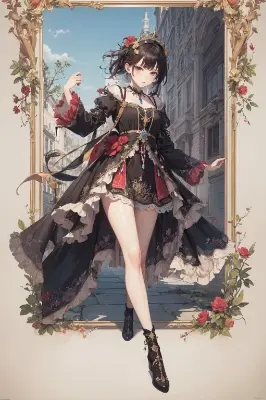 1girl, solo, dynamic poses, dynamic angle, full body, very wide shot, extremely long shot, looking up, high angle