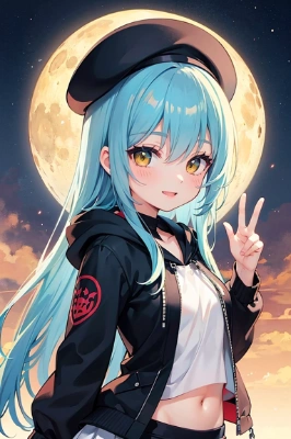 girl,tail,Sable and Strawberry hair colo hair,yellow eyes,dream,younger,Feet Aparcat,girl,indoor,smile,off,put index finger on mouth,day,Contemplating,CamisoleLong Hair with Highlights,shrine maiden,festival,Gazing,Blissful smile,aurora,mountain