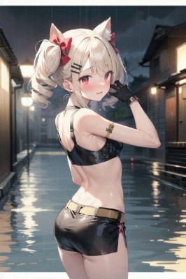 月明かりの下、廃墟と化した街の片隅に立つ一人の少女。彼女の名はエリス、ミナの親友で、魔界から来た訪問者だ。かつては賑わいを見せたこの街角も、今では猫のような生物たちの住処となっている。 エリスはこの世界と魔界の境界に立つ。彼女の周りでは、空間が歪み、現実と異界が交錯している。猫たちはその境界を自由に行き来し、彼らの存在がこの場所を特別なものにしている。 ミナとの出会いから数週間、エリスはこの街の廃墟を探索し、彼女の世界とこの世界の接点を見つけようとしていた。エリスの力はこの街に微かな魔力をもたらし、廃墟に新たな息吹を与えている。 この夜、彼女は月に語りかける。「この街にも、私の世界と同じように、深い魔力が宿っていたんだね」と。彼女の言葉に呼応するかのように、街角の看板がふっと光を放ち、猫たちが優雅に彼女の周りを舞う。 エリスはこの廃墟が、ただの廃墟ではなく、魔界に落ちた場所として新しい章を迎えることを感じていた。そしてミナと共に、彼女たちはこの新しい世界での生活を、力強く生き抜くことを誓った。 by GPT4V