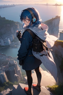 A girl wearing a headset, Hamster girl, (dynamic pose:1.8), cute Armpit, 1girl, solo, blue hair, gloves, A canvas-colored scarf that covers the lower half of the face, Eyes that shine like jewels,
