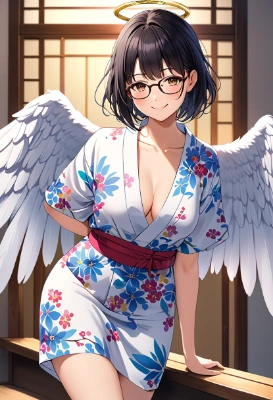 woman, angel halo, white big wings, smile, blonde, gal, boots