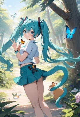 1girl, hatsune miku, vocaloid, masterpiece, best quality, rating: general, newest,tail,longhair,blue hair,green hair,blue eyes,t,tail,tail, atyou, ,tail,mini skirt ,tail ,tail,butterfly,tail,tail,tail,tail,fantasy,beach at ,clear sky,hamster,flower,forest,tail,tail,tail,tail <lora:brighter-eye2:1> <lora:gloweyes_v100:1>,short sleeve,tail,different world,fairy
