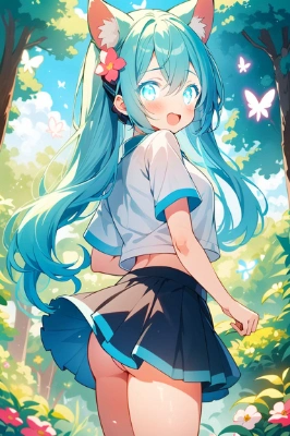 1girl, hatsune miku, vocaloid, masterpiece, best quality, rating: general, newest,tail,blue hair,green hair,t,tail,tail, atyou, ,tail,mini skirt ,tail ,tail,butterfly,tail,tail,tail,tail,fantasy, at ,clear sky,hamster,flower,forest,tail,tail,tail,tail <lora:brighter-eye2:1> <lora:gloweyes_v100:1>,short sleeve,tail,fairy,red eyes