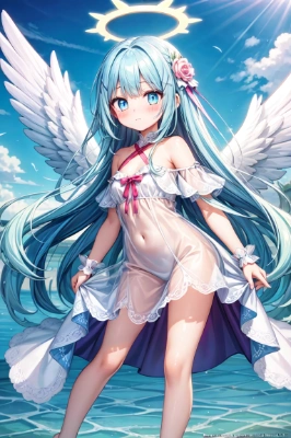 Masterpiece, best quality, extremely detailed, (illustration, official art: 1.1), (((((1 girl))))), ((light blue long hair))), light blue hair, 10 years old, ((blush)), cute face, big eyes, tareme, masterpiece, best quality, ((a very delicate and beautiful girl)))), , girl,amazing, beautiful detailed eyes, blunt bangs (((little delicate girl)))), tareme (true beautiful: 1.2),, and sweet,(Composition looking up from a low position)、,1girl,, , (official art、best quality、Unity 8k wallpaper、32k、Masterpiece、Super detailed、ultra high resolution、realistic、Realism、very funny:1.2)、 (masterpiece, best quality), 1girl, ice shards, hands crystal ice, ice blade, blue magic circle, blue corset, black thighhighs, sidelighting, light particles, abstract,、(Chis、in the house、Stained glass of art、Large pipe organ、Hello、mystery、A lot of feathers floating、angelic、light particles、serious、Sunshine is、Colorful、fantastic:1.2)、(fantastic:1.3)、、fantastic、smile smile ,Church background,Purple roses,, butterfly style, iris, Liuli, Polychromexistic prism effect,<lora:deluster2:1> <lora:yawanuri:1> ,