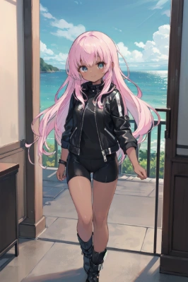 16、Kdetailed,best quality,ultra detailed,insanely detailed,1girl,(((anime screencap))),hands on cheeks,sitting down,Smiling,Bikini,hoodie,((waterfall)),(forest),(pond)、((re:zero, rem,blue hai,short hair,hair over one eye,medium breasts,blue eyes,1girl)),