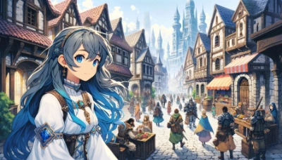 活気あふれる城下町の酒場での様子です。