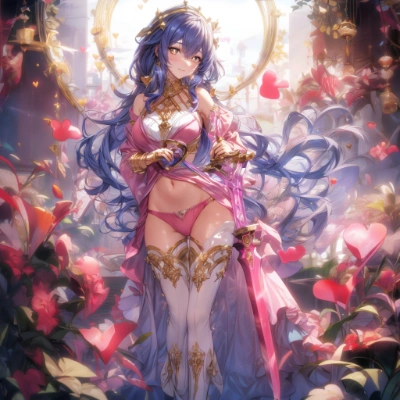 hires, cinematic angle,beautiful face,finely detail, masterpiece, best quality, ultra-detailed,Photorealistic,8k,lens flare,intense shadows,Studio,dreamy washes,bokeh photography,dreamy ambiance,beautiful detailed glow,colorful refraction,golden hour lighting,backlighting,colorful lighting,1girl,solo,(full body,:1.1),(watercolor \(medium\):0.25),<lora:watercolor:0.25>,<lora:midjourney_20230624181825:0.35>,(xuer swing:0.1),<lora:xuer swing_20240215221119:0.1>,<lora:flat2:-0.5>,<lora:ClorindeV2:0.7>,clorinde \(genshin impact\), (cool woman,mature female,mature,30 years old:1.4),(long hair,dark blue hair,light blue streaked hair,purple eyes,tsurime,large breasts,:1.2),looking at another,(lying on hammock,:1.4)sleeping on hammock,(one eye closed,seductive smile,:1.2),arms behind head,(pink bikini armor,pink sarong,skimpy armor,pink gothic lolita,:1.2),(beautiful forest,beautiful lake,:1.4),(cherry blossom garden,cherry blossoms,landscape of cherry blossoms,petals:1.3),(dusk sky,evening,:1.1),tree,wind,nature,butterfly,fantasy,fancy,cute