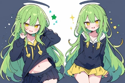 20, girl, long hair, mesh, short skirt, emerald green hair, yellow eyes, navel out, hoodie, dress, smile,mischievous masterpiece, highest quality,girl,tail,blue hair,yellow eyes,dream,younger,cat,girl, ,smile,off best quality,masterpiece, highest quality, Ultra-high resolution, Long black hair anime girl wearing a beret, Small breasts, Anime Style 4k, beautiful anime portrait, Anime Moe Art Style, anime art wallpaper 4k, anime art wallpaper 4k, High quality anime art style, Anime style portrait, Gweitz, artwork in the style of Gweitz, Detailed digital anime art, Anime Art Wallpapers 8K, Cute Anime Girl Portrait, Moonlit Night, whole body <lora:hyperdetailer_v060.safetensors:1>