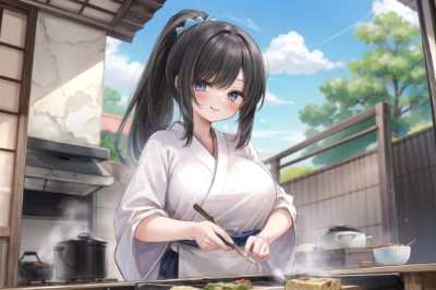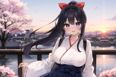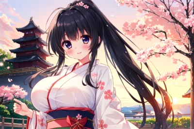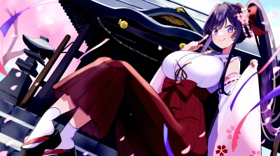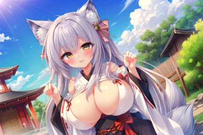 white fox semi longhair, left and right both side Braid hair,1girl, skyblue eyes, big sister, Japanese style, day, blue sky, smile, happy, big breasts, wearing pure white, a Shinto wedding, a bride's hood, sirakami fubuki, june bride, hakurei shrine, , best quality, amazing quality, very aesthetic, absurdres