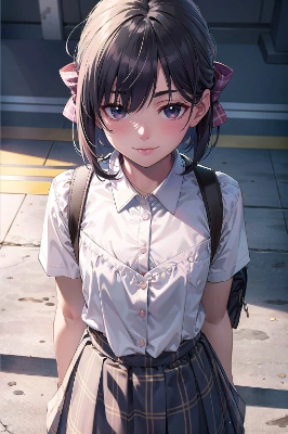(SFW:1.6), (masterpiece, best quality, awesome extremely realistic, high resolution:1.3), 1girl, solo, Japanese, 17yo, (tall:1.3), BREAK (black short bob, straight hair:1.4), bangs, (tsurime:2.1), (very thin eyes:1.7), (thick eyebrow:1.4), closed mouth, (looking down on light smile:1.2), (blush:1.4), (flat chest:1.7), BREAK school uniform, (plaid bow:1.5), (round collared cutter shirt:1.6), (plaid midi skirt:1.7), black socks, Brown rofers