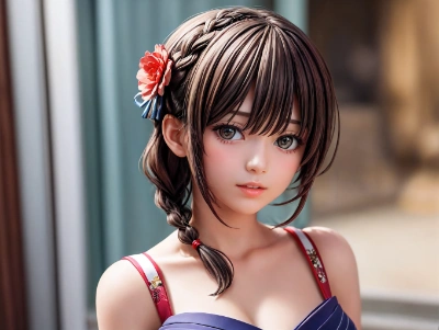 BREAK wearing a china dress, (twin braids:1.2), ribbon,
