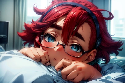 (black and gold headphones, 1girl, solo, reddish brown eyes, blue hair, blue eyebrows, short hair, fluffy hair, (glasses, thick eyebrows, short eyebrows, droopy eyes):1.8, thick and short eyebrows, brown scarf that covers the lower half of the face, dark brown scarf, Railway employee black uniform, long sleeves, belt, skirt, boots, Eyes that shine like jewels, beautiful eyes, eyes full of hope, Lustrous skin, shiny skin, big eyes, large eyes, ultra detailed eyes, beautiful detailed eyes, (Jig eyes), delicate colors, illustration, bright colors, beautiful hair, (slender, skinny):1.4):1.4, (side ponytail):1.8 upper body, full face blush, hair over eyes, (Throwing hearts):2.0, one eye opened and one eye closed, majestic, , ribbon braided in hair, naughty face, (doyagao),smug,:3,open mouth,:d,smile,half_closed eyes,grin,jitome , more_details:1.5