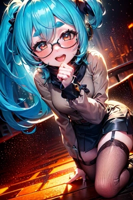 (black and gold headphones, 1girl, solo, reddish brown eyes, blue hair, blue eyebrows, short hair, fluffy hair, (glasses, thick eyebrows, short eyebrows, droopy eyes):1.8, thick and short eyebrows, brown scarf that covers the lower half of the face, dark brown scarf, Railway employee black uniform, long sleeves, belt, skirt, boots, Eyes that shine like jewels, beautiful eyes, eyes full of hope, Lustrous skin, shiny skin, big eyes, large eyes, ultra detailed eyes, beautiful detailed eyes, (Jig eyes), delicate colors, illustration, bright colors, beautiful hair, (slender, skinny):1.4):1.4, (side ponytail):1.8 upper body, full face blush, hair over eyes, (Throwing hearts):2.0, one eye opened and one eye closed, majestic, , ribbon braided in hair, naughty face, (doyagao),smug,:3,open mouth,:d,smile,half_closed eyes,grin,jitome , more_details:1.5