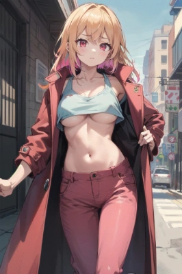 (masterpiece), (best quality),(ultra-detailed),(illustration),(extremely detailed),(perfect anatomy),(super detailed skin),(detailed),(beautiful detailed eyes),1girl,solo,, brown hair, red eyes,side ponytail,drill hair,kimono,miniskirt,breast,collarbone,(off shoulder),white kimono,parted lips,pleated skirt,red skirt,pantyhose,thighhighs,thighhighs over pantyhose,smile,one eye closed,ceiling,sky,outdoors,miko,,