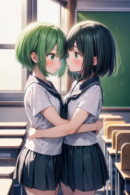 masterpiece, best quality, extremely detailed, anime, girl, skirt <lora:flat2:0> <lora:hairdetailer:1> , crouching, confused, sweating, sunny day, summer, school, foreshortening, colorful, student, younger sister, green eyes, green hair, T shirt, ponytail, braids, ahoge, wet hair, girl, Yankeebig muscies,bloomers,,,