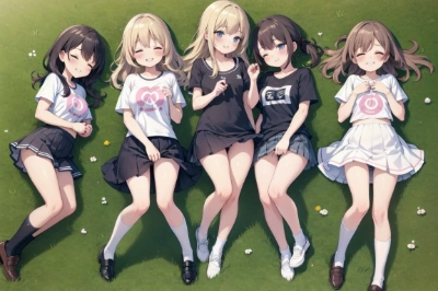 masterpiece,best quality,extremely detailed,(Three glamorous waitresses at a family restaurant strip down to their uniforms and expose their bras and underwear in erotic poses as a service to seated customers:1.5),erotic smile,(Many customers are staring at the girls as they watch them:1.2),