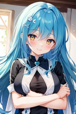 (best quality:1.3, ultra-detailed:1.3), a girl, alone, with (white, messy, long) hair, (angel wings, angel halo), flat chest, yellow eyes, (white shirt, black tie, black coat, open coat), cowboy shot, cinematic lighting, (((glimmering particles of light))), (crossed arms behind her back), dynamic angle,girl,tail,blue hair,yellow eyes,dream,younger ,sister,White cat
