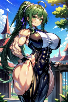 masterpiece, best quality, extremely detailed, anime, girl, skirt <lora:flat2:0> <lora:hairdetailer:1> , crouching, blushing, smiling, panty shot, ruins, spring, colorful, foreshortening, student, younger sister, original character, green eyes, green hair, T shirt, ponytail, longhairMiniskirt, a little fat, white socks, black underwear,,
