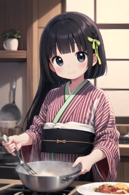 1 girl,(((very longest hair))),smile, Black hair,straight Hair,hair ribbon,mintgreen stripe,Black Eyes,flat chest,straight Across bangs,princess Cut, Very Long Sideburn,roundry Head,Droping eyes,cute,Meekness,Bob Cut,long back hair,12 years Old,loli,Twintails