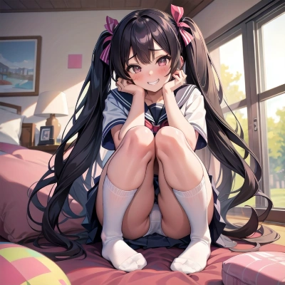 masterpiece,best quality,extremely detailed,1girl,hacker,teenager,curvy,twintails,tube_top,cleavage,navel,cute striped panty,no skirt,bare foot,grin,sitting on gamingchair,She's hacking,
