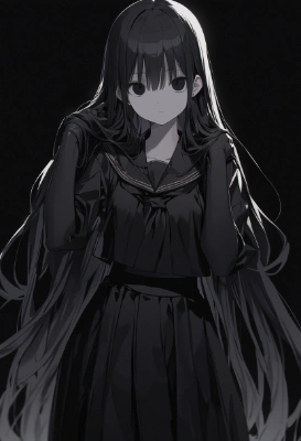 masterpiece, best quality, extremely detailed, high resolution, cowboy shot,((no hat:1.3)), Japanese anime,1girl, dark green hair, bob cut, blunt bangs, orange eyes, (beautiful detailed eyes:1.2),stressed, 10 -year-old ,149cm tall, Gaunt, original character, fantasy, (black background:1.2), beautiful fingers, (hands on own chest:1.3), ((light blue no sleeves shirts), short pants, sneakers), shoot from front, looking at viewer <lora:noline:1> <lora:eyecolle_begonia_v100:1> ,,