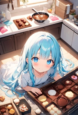 masterpiece, best quality, extremely detailed, (illustration, official art:1.1), 1 girl ,(((( light blue long hair)))),(flat chest)), light blue hair, ,10 years old, long hair ((blush)) , cute face, big eyes, masterpiece, best quality,(((((a very delicate and beautiful girl))))),Amazing,beautiful detailed eyes,blunt bangs((((little delicate girl)))),tareme(true beautiful:1.2), hair ornaments, Ahoge, Hair Clip, x hair ornaments, happy smile, smile, Open your mouth,chef uniform, , chef, Zend 4y4, cooking, Chinese pan, fire, fried rice, Stove, フレームから足が外れている break indoors, kitchen, break looking at viewer, (Cowboy Shot:1.5), break (masterpiece:1.2), highest quality, High resolution, unity 8k wallpaper, (shape:0.8), (Beautiful details:1.6), Highly detailed face, Perfect lighting, Extremely detailed CG, (Perfect hands, Perfect Anatomy), 、Cooking in the kitchen、 <lora:flat2:0> <lora:yawanuri:1> ,