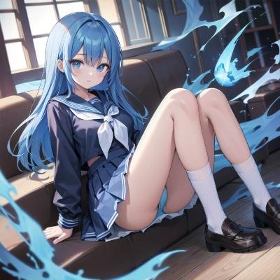 青髪メイド