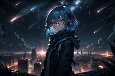 (black and gold headphones, 1girl, solo, reddish brown eyes, blue hair, blue eyebrows, short hair, fluffy hair, (glasses, thick eyebrows, short eyebrows, droopy eyes):1.8, thick and short eyebrows, brown scarf that covers the lower half of the face, dark brown scarf, Railway employee black uniform, long sleeves, belt, skirt, boots, Eyes that shine like jewels, beautiful eyes, eyes full of hope, Lustrous skin, shiny skin, big eyes, large eyes, ultra detailed eyes, beautiful detailed eyes, (Jig eyes), delicate colors, illustration, bright colors, beautiful hair, (slender, skinny):1.4):1.4, ((side ponytail):2.0) upper body, full face blush, hair over eyes, (Throwing hearts):2.0, one eye opened and one eye closed, majestic, , ribbon braided in hair, naughty face, (doyagao),smug,:3,open mouth,:d,smile,half_closed eyes,grin,jitome , more_details:1.5,full-face blush,(heart-shaped pupils):1,6,more_details:-1, more_details:0, more_details:0.5, more_details:1, more_details:1.5,full-face blush,heart-shaped pupils,double v, single v, v