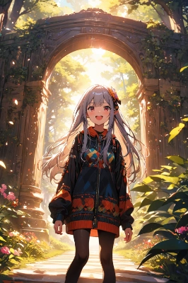 spring,cute 1girl,12yo,(platinum hair),(long straight hair:1.5),elf ear,smooth body,sharp face,small breasts,fashionable,trendy outfit,happy,jewelry,hair ornament,