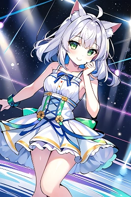1girl, solo, long hair, looking at viewer, bangs, black hair, hair ornament, red eyes, long sleeves, dress, bow, ribbon, twintails, jewelry, standing, jacket, hair ribbon, sidelocks, cowboy shot, outdoors, frills, parted lips, open clothes, sky, bowtie, white dress, red bow, open jacket, red ribbon, black jacket, night, frilled dress, building, red bowtie