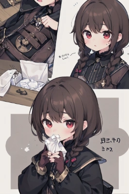 masterpiece, best quality, extremely detailed, anime, girl, skirt, Tissue, a pretty woman, longhair, blonde hair, red eyes, demon, colorful, steampunk, magic, sword(The Demon King takes some tissue from the tissue case, pops it in the tissue box, and blows his nose cutely, with a smile.),